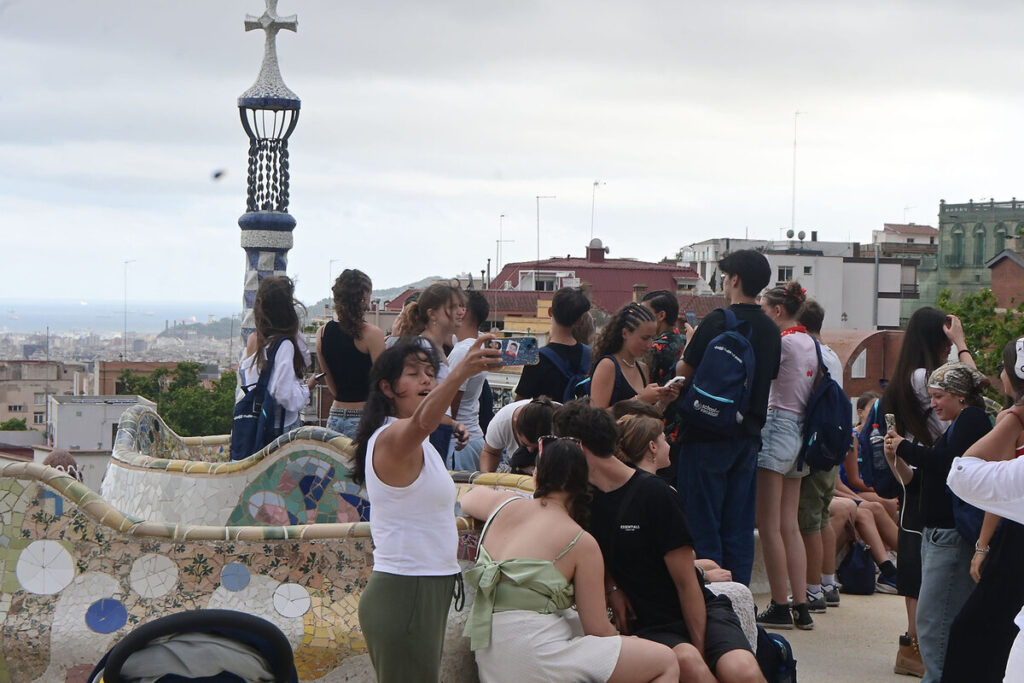 Nearly 1.6 million visitors each year come off cruise ships in Barcelona and join throngs of tourists, like these overseeing the city from Park Güell. Locals call passengers “drive-by tourists,” because they often stay for only a day.